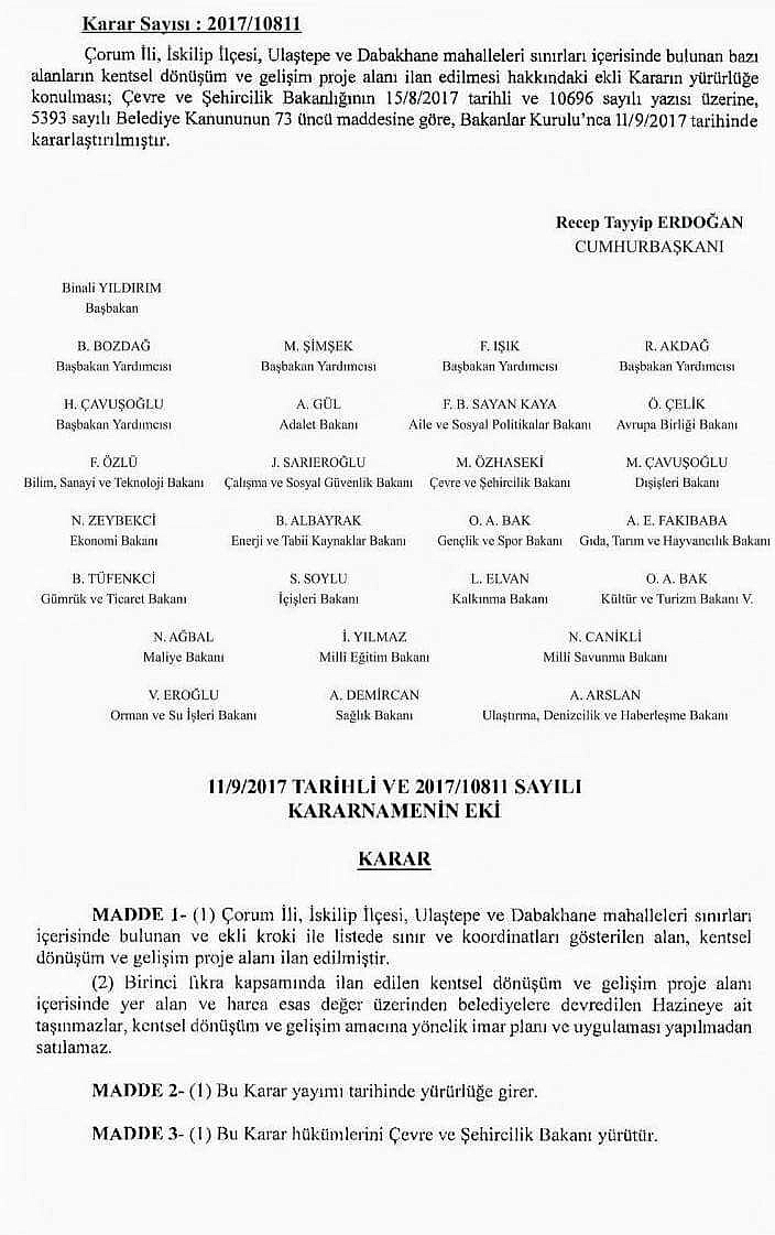 İskilip Belediyesinin Ulaştepe ve Dabakhane mahalleleri içinyaptığı kentsel dönüşüm başvuru resmî gazetede yayınlandı. Bu ne demek ayrıntıları yazacağız ama Ulaştepede ve Dabakhane mahallelerinde 8,5 hektarda imar yeniden çizilecek, düşük faizli kredi alınacak, TOKİ girebilir. Demirciler çarşısından itibaren apartmanlaşma başlayabilir.