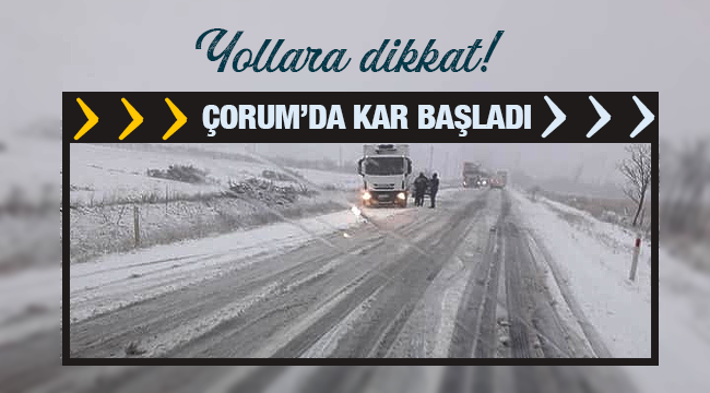 Meteoroloji bu gece ve çarşamba günü için uyarmıştı. Çorum'da birkaç gündür devam eden sağanak yağmur, bazı bölgelerde yerini kar yağışına bıraktı. Özellikle Çorum-Mecitözü arasında ve Kaymakçı mevkisinde sürücüler kar sürpriziyle karşılaştı. Bazı bölgelerde kar nedeniyle trafik akışında sıkıntılar yaşandı.